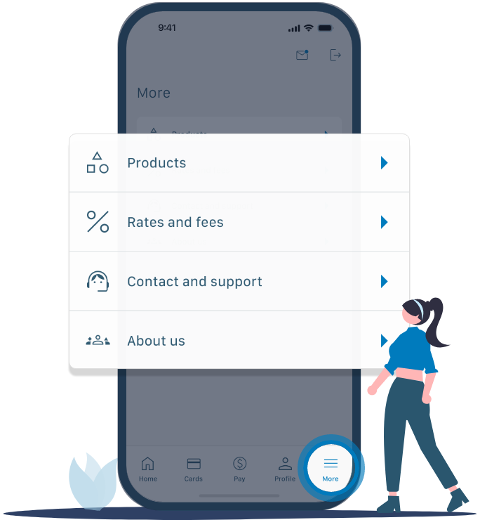 Access product info, support, and settings from the More tab.